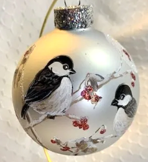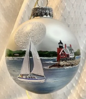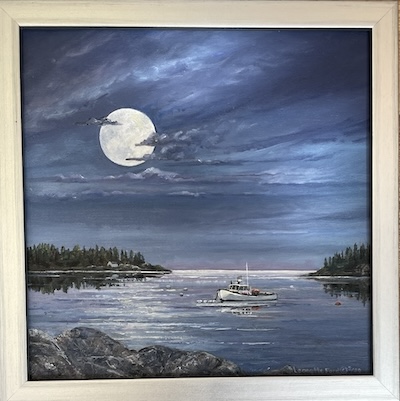 “All Tucked Inn” Giclee, 11×11 $375 “Indian Island Lighthouse” Giclee, 17×9 $395 Spruce Head Island, Oil, 22×12 $595 “Tenants Harbor Rythms” 16×16 Oil, $595 “An Evening at Drift Inn Beach” 28×11 Oil, $595 “Great Blue Heron Martinsville” Oil, 26×14, $700 “Lupine at Smugglers Cove” Oil, 14×14, $475 “Killdeer” Oil, 22×11, $350 “Buoys” Handpainted Sm. Glass Ornament $35 “Cardinals” Handpainted Lg Glass Ornament $50 “Chickadees” Handpainted Lg Glass Ornament $50 “Hummingbird” Handpainted Lg Glass Ornament $50 “Pemaquid Lighthouse” Handpainted Lg Glass Ornament 50 “Maine Guide Dog” Handpainted Sm. Glass Ornament $35 “Summer Comes to Marshall Point” SOLD “Loons in the Mist” SOLD “Pemaquid Lighthouse” SOLD “Winterberry & Chickadees” SOLD “Maine Birds” SOLD “Lupine” SOLD “Rockland Lighthouse” SOLD “Schooner Adventure” HandpaintedGlass Ornament SOLD “Maine Lobster Boat” SOLD